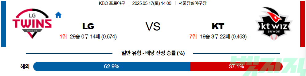 5월 17일 야구중계 LG KT KBO 무료중계 스포츠분석