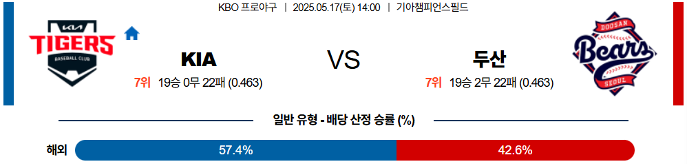 5월 17일 야구중계 KIA 두산 KBO 무료중계 스포츠분석
