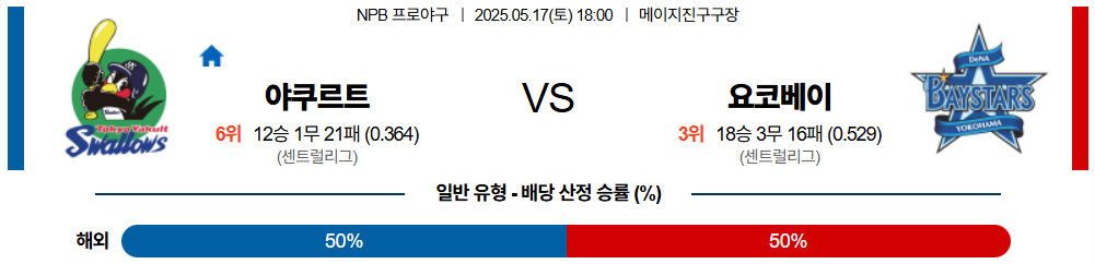 5월 17일 야구중계 야쿠르트 요코하마 NPB 무료중계 스포츠분석