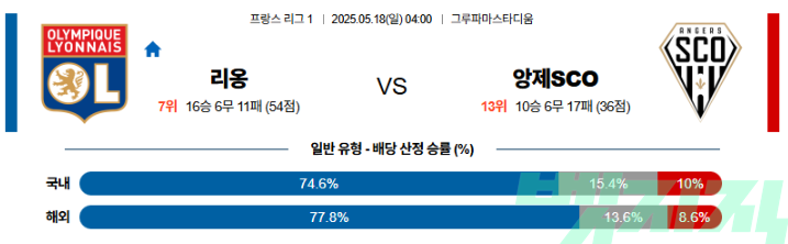 5월 18일 축구중계 리옹 앙제 프랑스 리그앙 스포츠분석