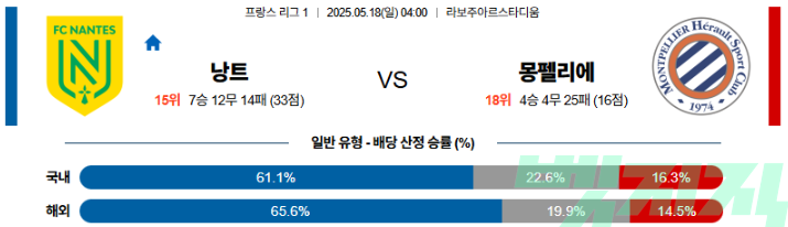 5월 18일 축구중계 낭트 몽펠리에 프랑스 리그앙 스포츠분석