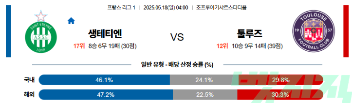5월 18일 축구중계 생테티엔 툴루즈 프랑스 리그앙 스포츠분석