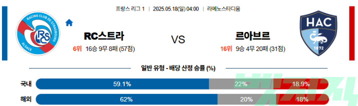 5월 18일 축구중계 스트라스부르 르아브르 프랑스 리그앙 스포츠분석