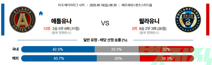 5월 18일 축구중계 애틀랜타 필라델피아 미국 MLS 스포츠분석