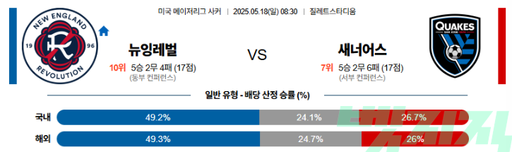 5월 18일 축구중계 뉴잉글랜드 산호세 미국 MLS 스포츠분석