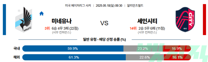 미네소타는 홈에서의 공격 전개는 날카롭지만, 수비 집중력 저하와 로테이션 제한으로 인해 클린시트 확률이 낮다. 반면 세인트루이스는 공세 전환력은 있으나 수비 불안이 크다. 양 팀 모두 공격 성향이 강한 상황에서 오버 가능성이 높고, 흐름은 팽팽하게 이어질 전망이다.​