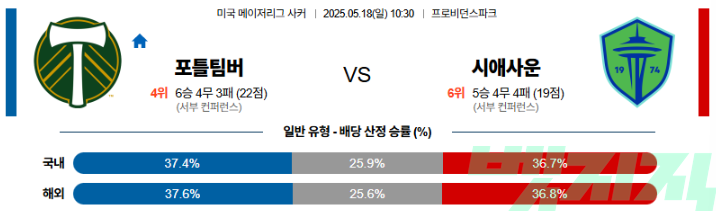 5월 18일 축구중계 포틀랜드 시애틀 미국 MLS 스포츠분석