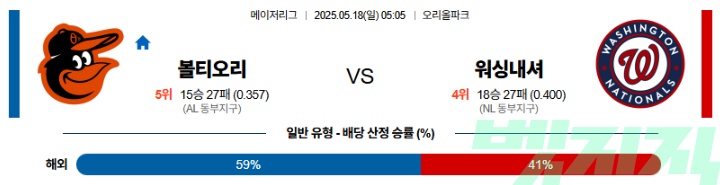5월 18일 야구중계 볼티모어 워싱턴 MLB 무료중계 스포츠분석
