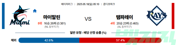 5월 18일 야구중계 마이애미 탬파베이 MLB 무료중계 스포츠분석
