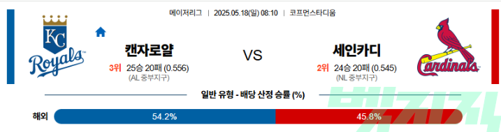 5월 18일 야구중계 캔자스시티 세인트루이스 MLB 무료중계 스포츠분석