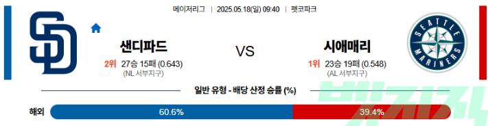 5월 18일 야구중계 샌디에고 시애틀 MLB 무료중계 스포츠분석