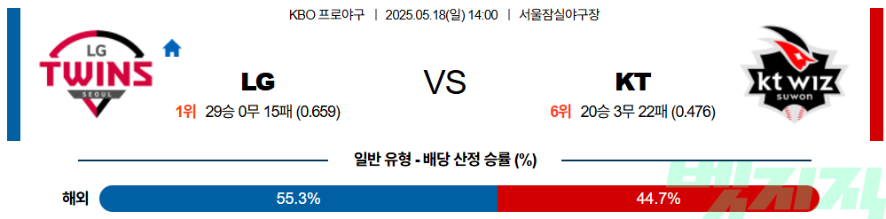 5월 18일 야구중계 LG KT KBO 스포츠분석
