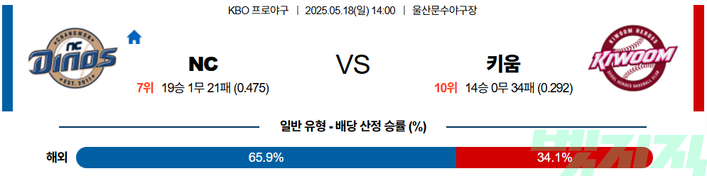 5월 18일 야구중계 NC 키움 KBO 스포츠분석
