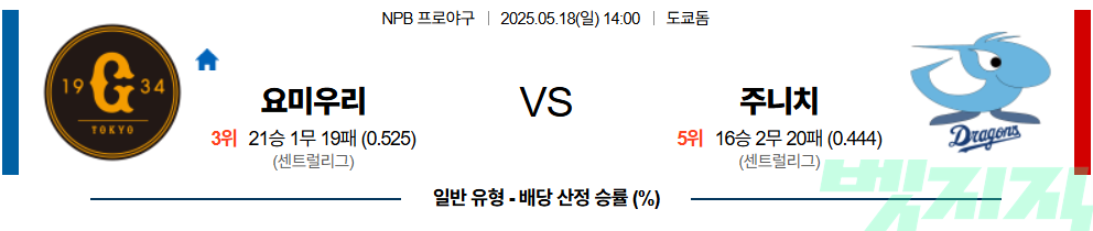 5월 18일 야구중계 요미우리 주니치 NPB 스포츠분석