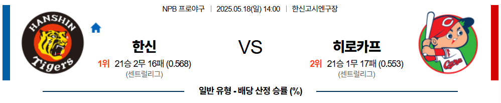5월 18일 야구중계 한신 히로시마 NPB 스포츠분석