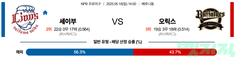 5월 18일 야구중계 세이부 오릭스 NPB 스포츠분석