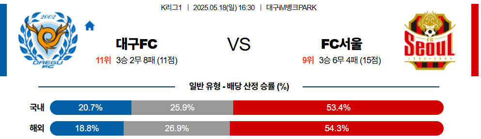 5월 18일 축구중계 대구FC FC서울 K리그 스포츠분석