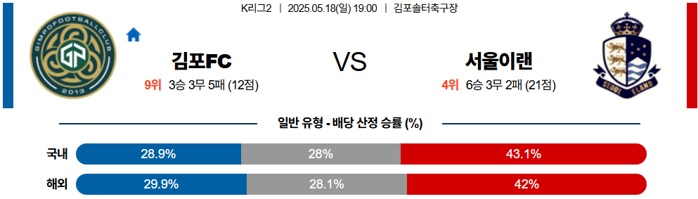 5월 18일 축구중계 김포FC 서울이랜드 K리그 스포츠분석