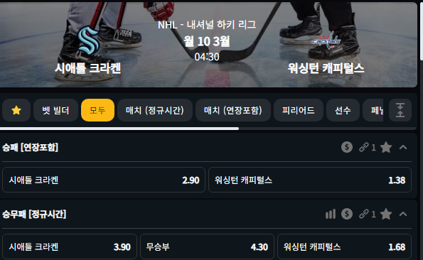 3월10일 시애틀 크라켄 VS 워싱턴 캐피털스 04:30
