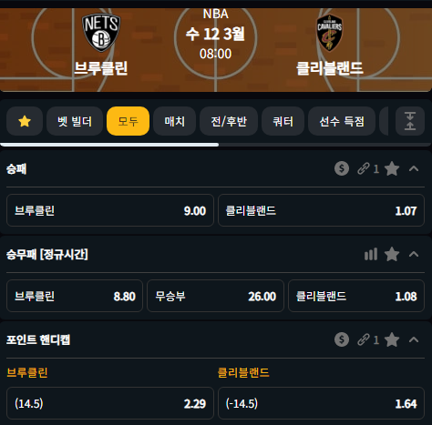 3월 12일 클리블랜드VS브루클린 08:00