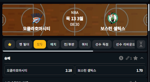 3월13일 오클라호마시티 VS 보스턴 셀틱스 08:30
