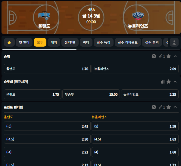 3월14일 올랜도 VS 뉴올리언즈 9:00