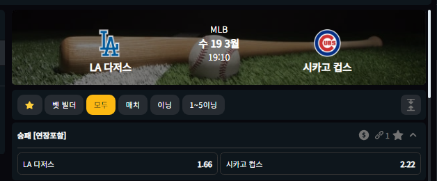 다저스 승 1.66배당 (벳80기준)