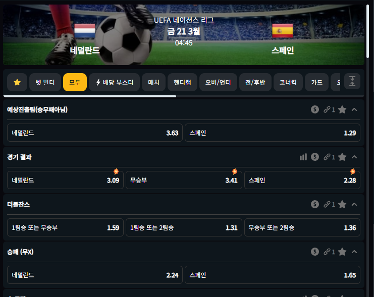 스페인 0핸디승 1.65 배당 (벳80기준)
