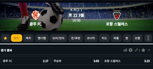 3월22일 광주 FC VS 포항 스틸러스 16:30