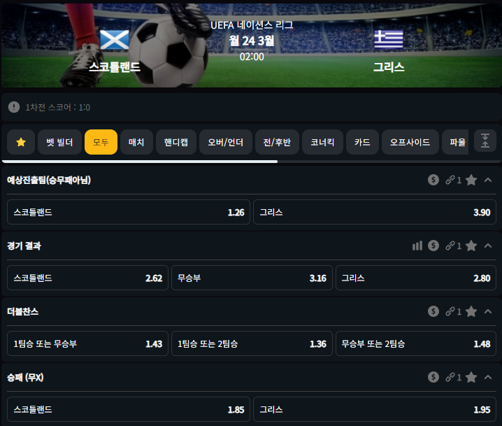 그리스 0핸디 승 1.95배당 (벳80기준)