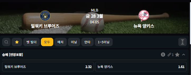 3월28일 밀워키 브루어즈 VS 뉴욕 양키스 04:45