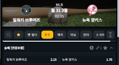 뉴욕양키스 승 1.70배당 (벳80기준)