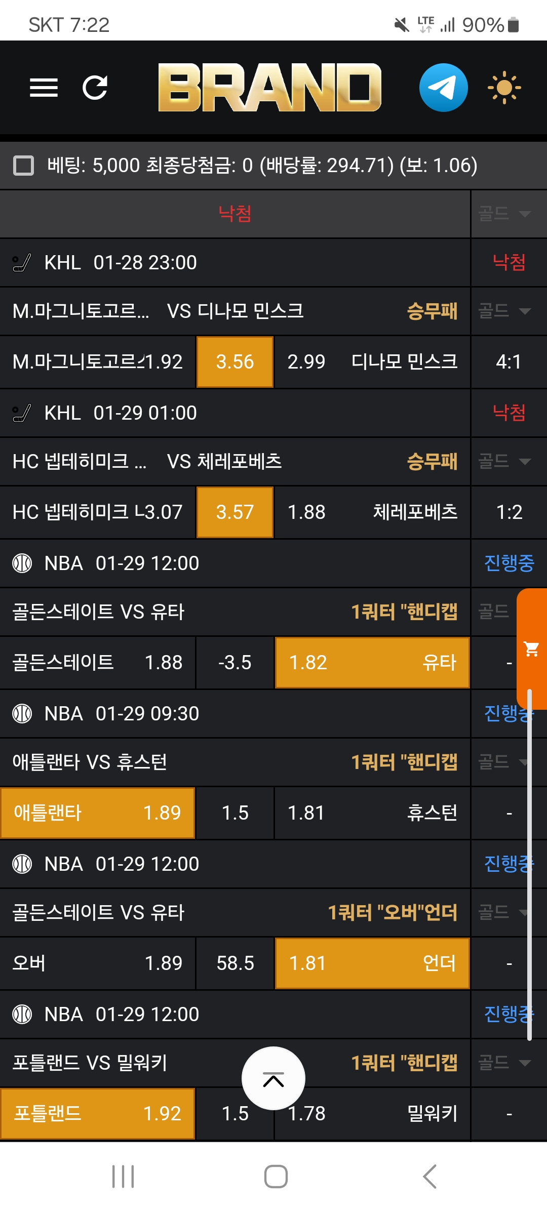 저녁 3경기 가봅니다