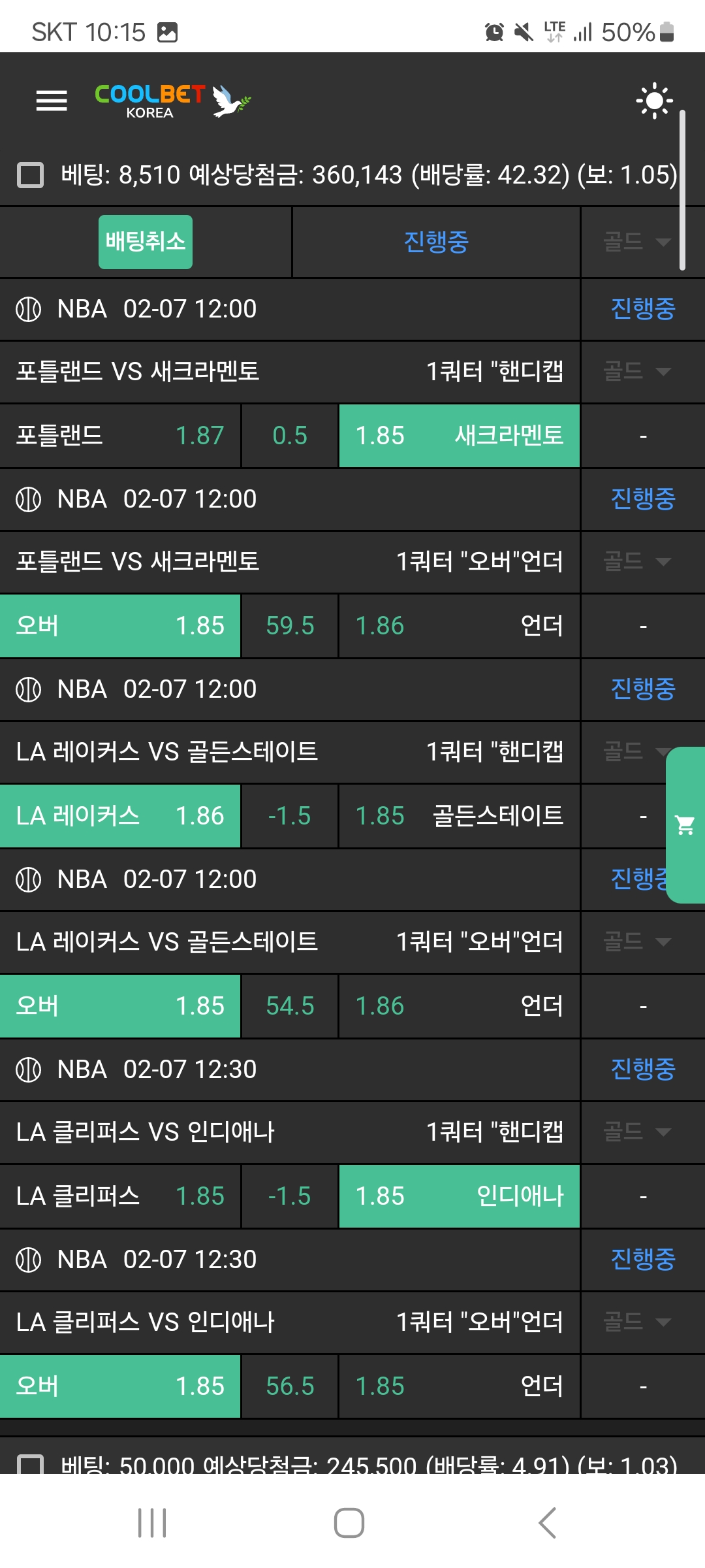 저녁 3경기 가봅니다