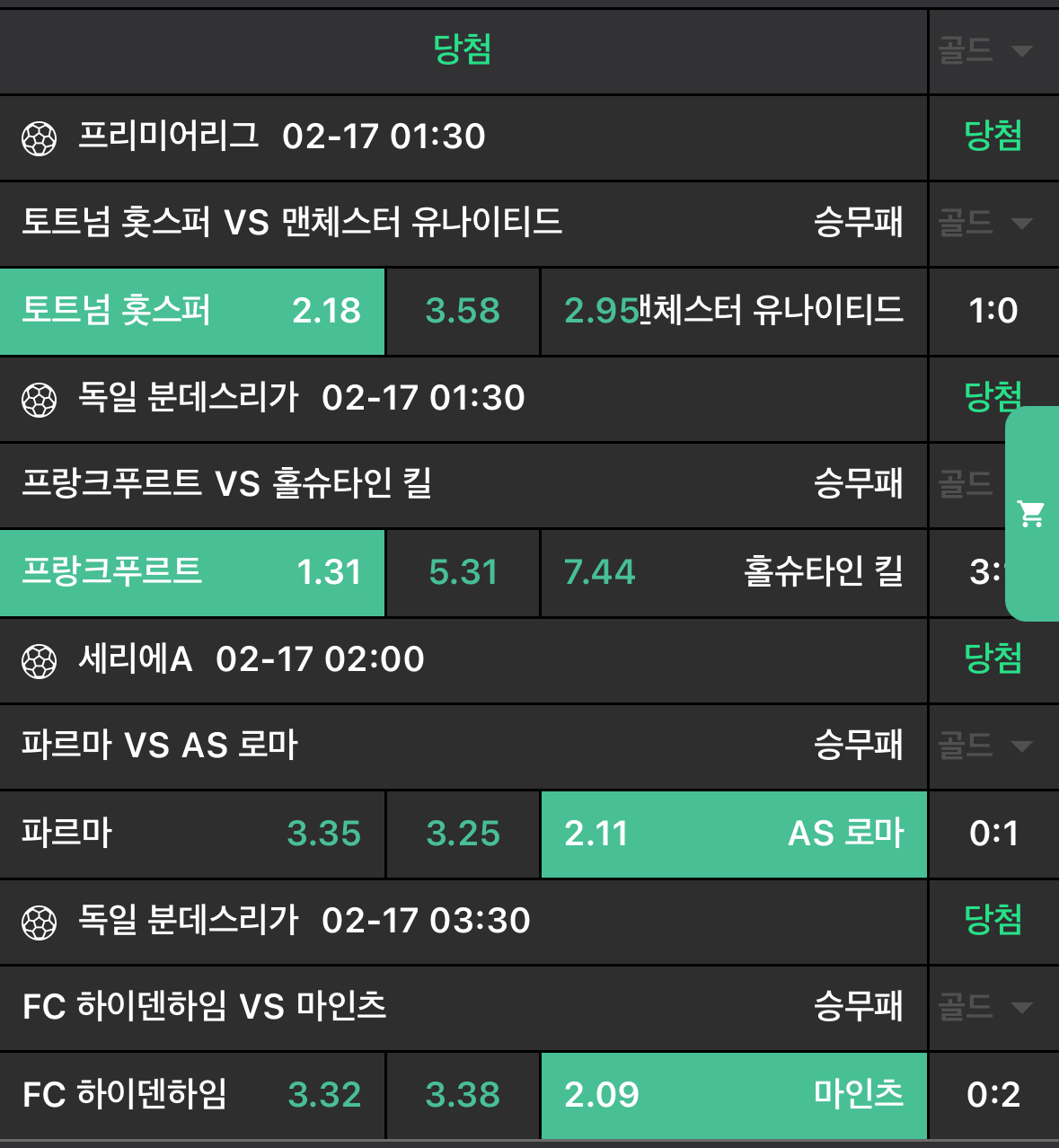 N저녁경기적중