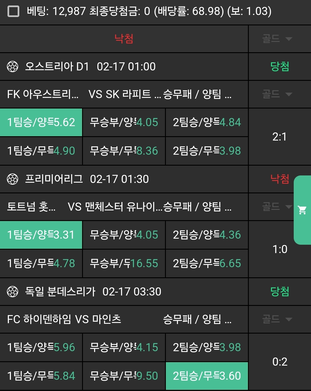 N저녁경기적중