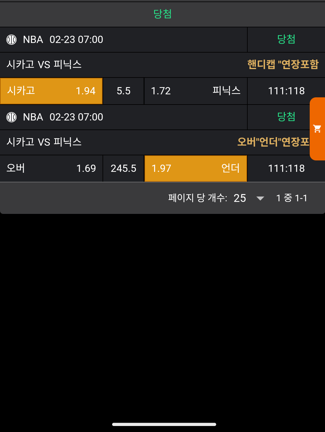 실시간 적중과 미적중