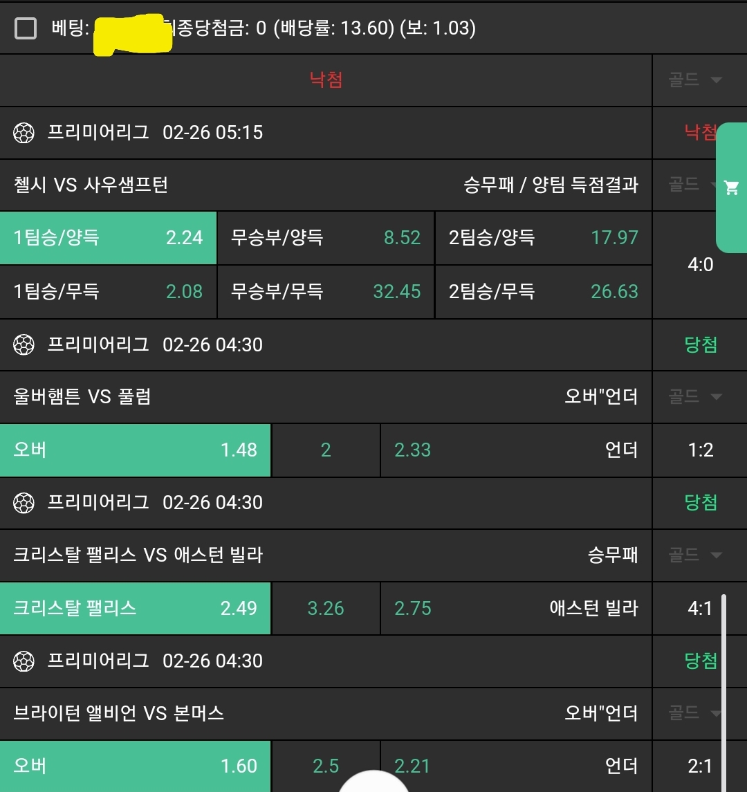 새축 소액 다폴 적중