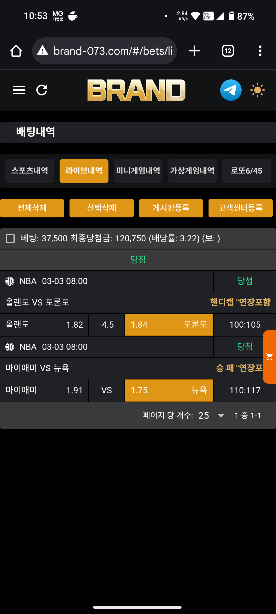 실시간 적중과 미적중
