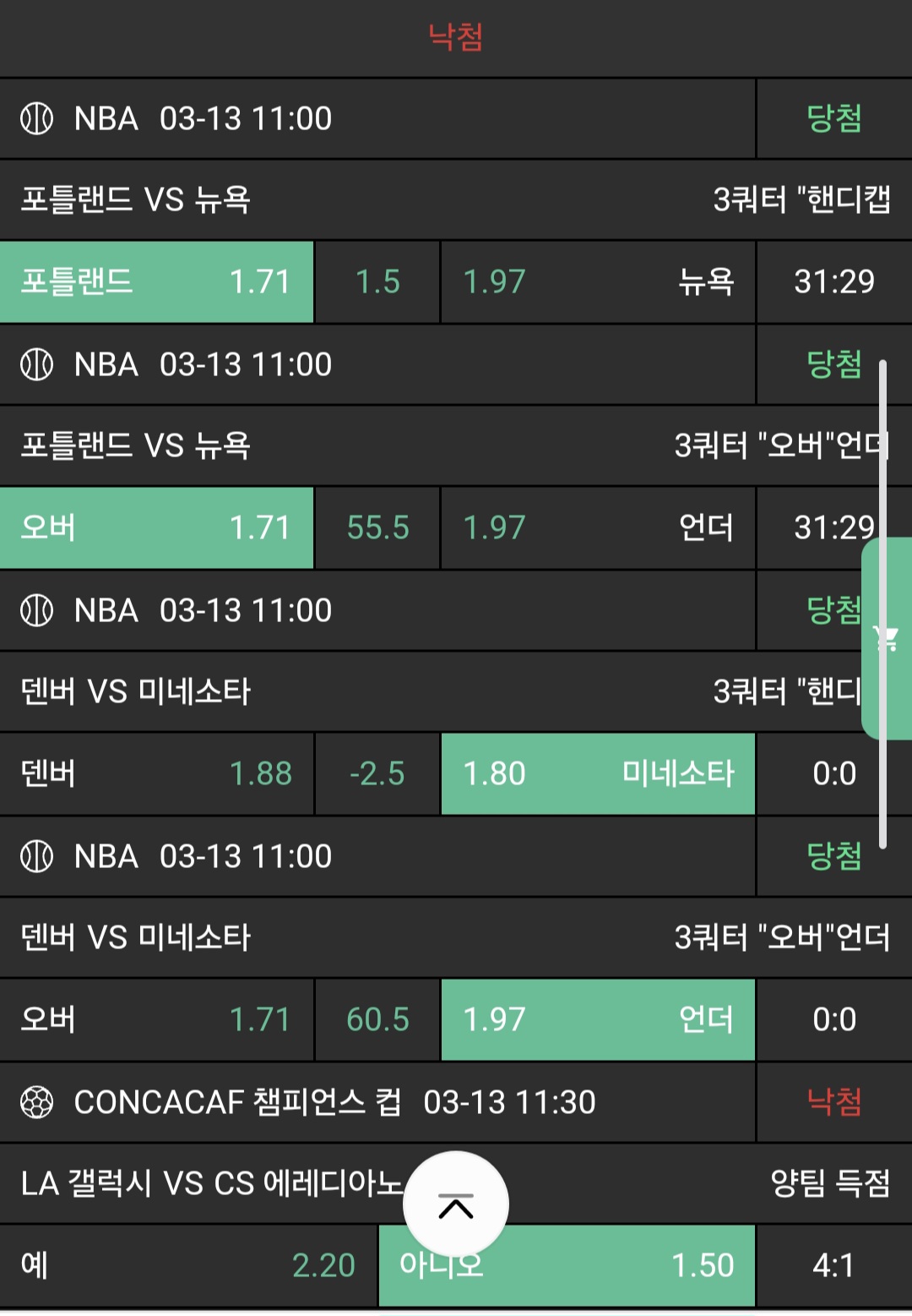 저녁 3경기 가봅니다