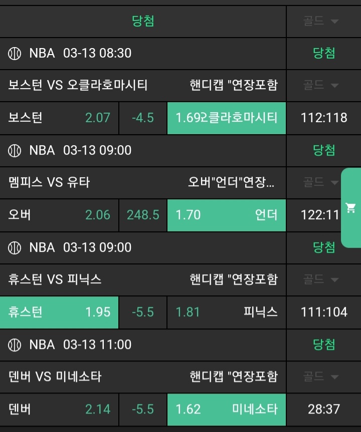 N저녁경기적중