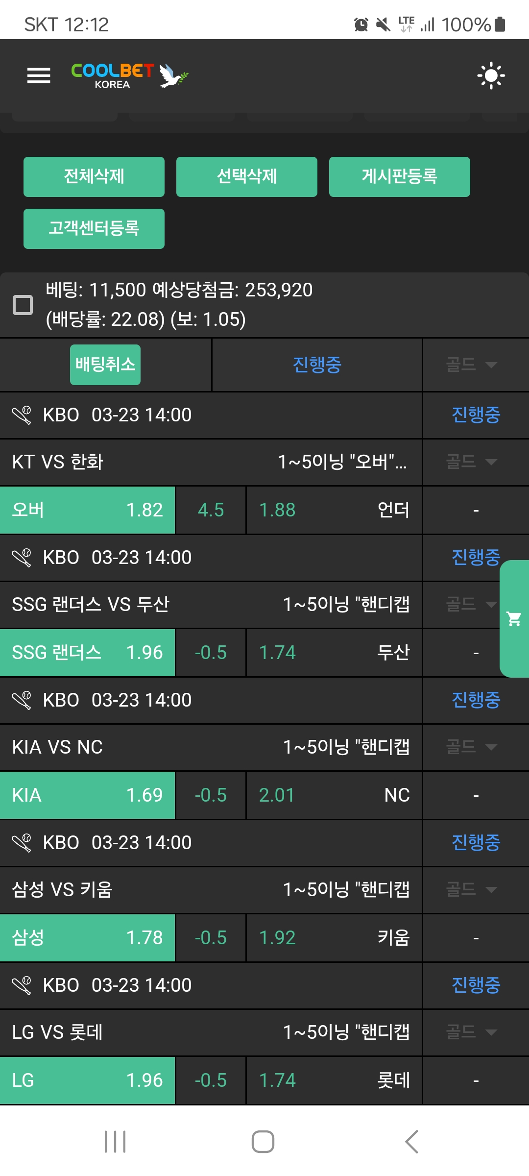 저녁 3경기 가봅니다
