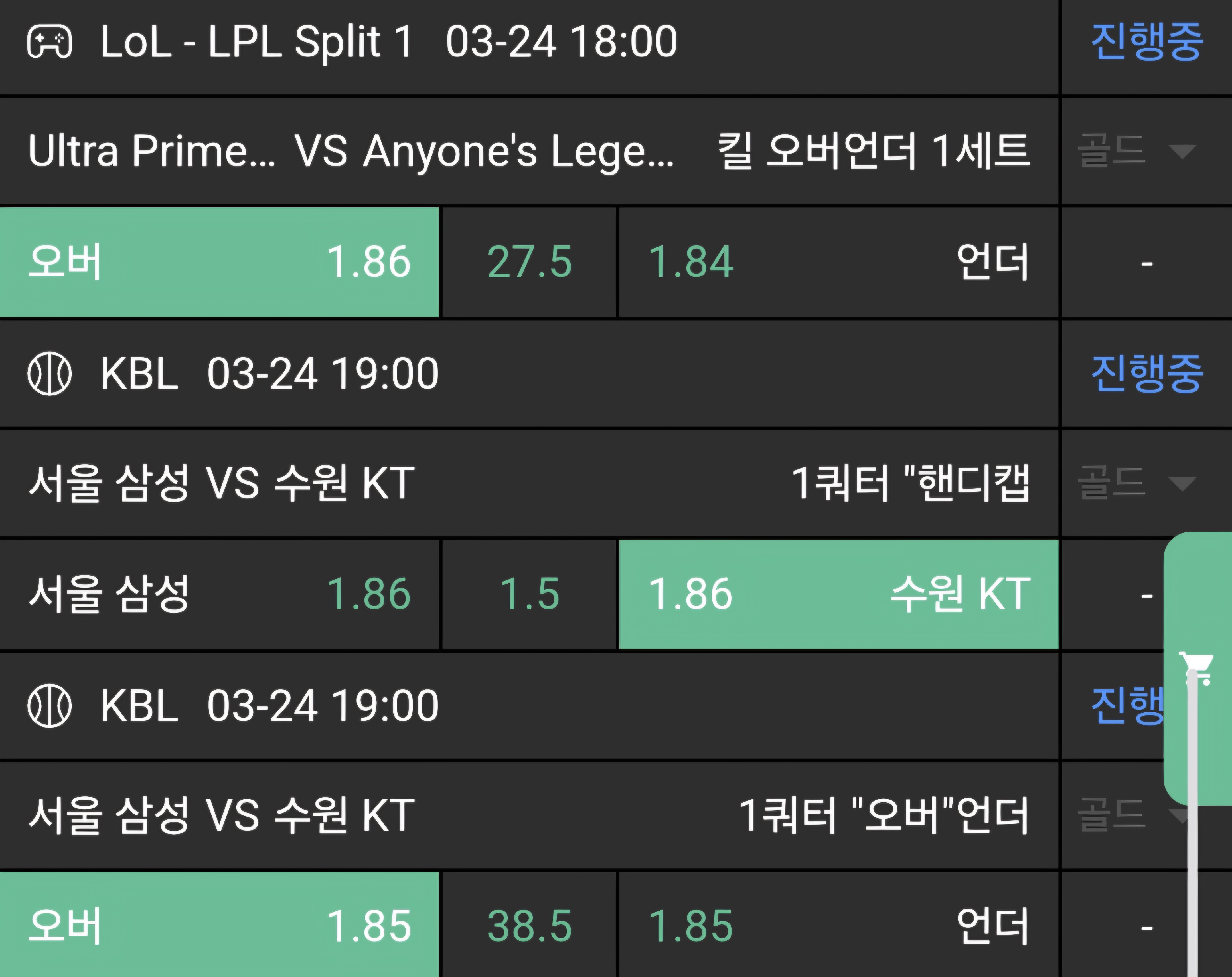 N저녁경기적중