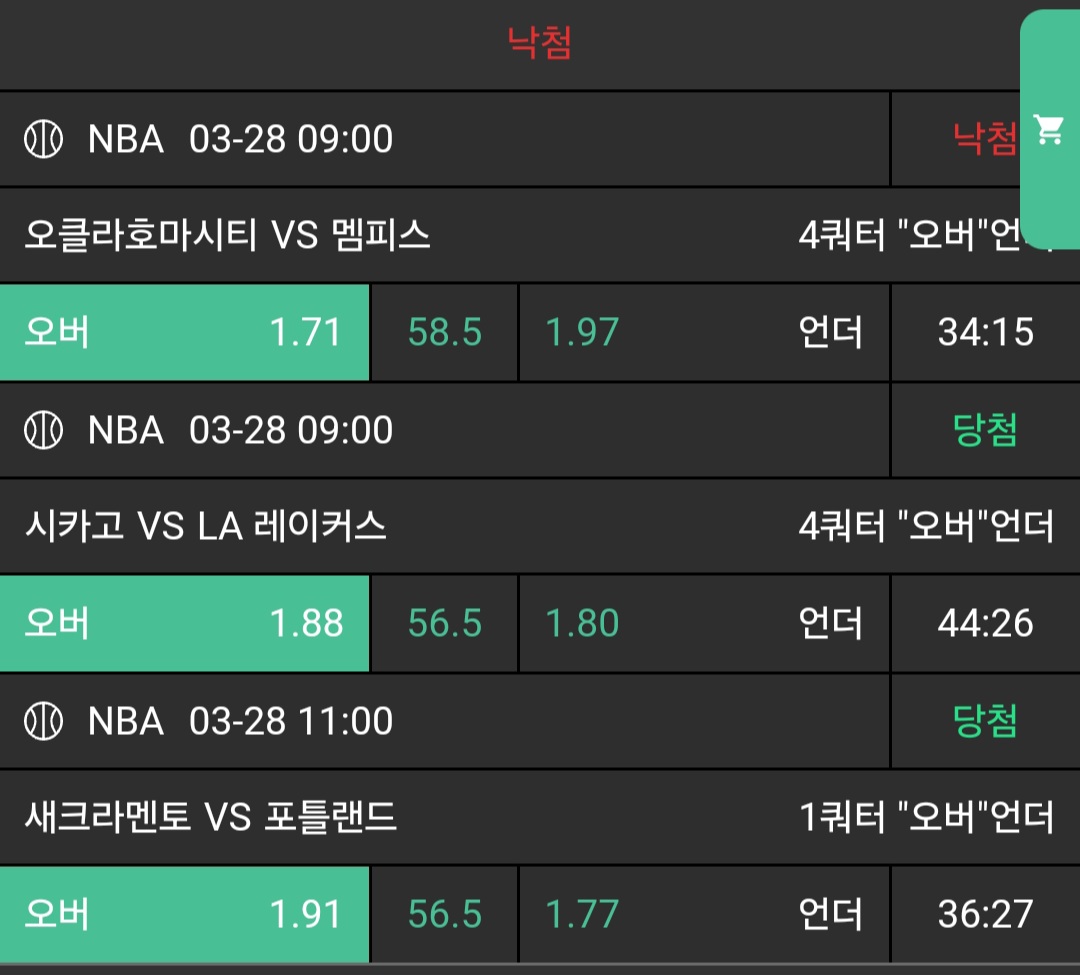 저녁 3경기 가봅니다