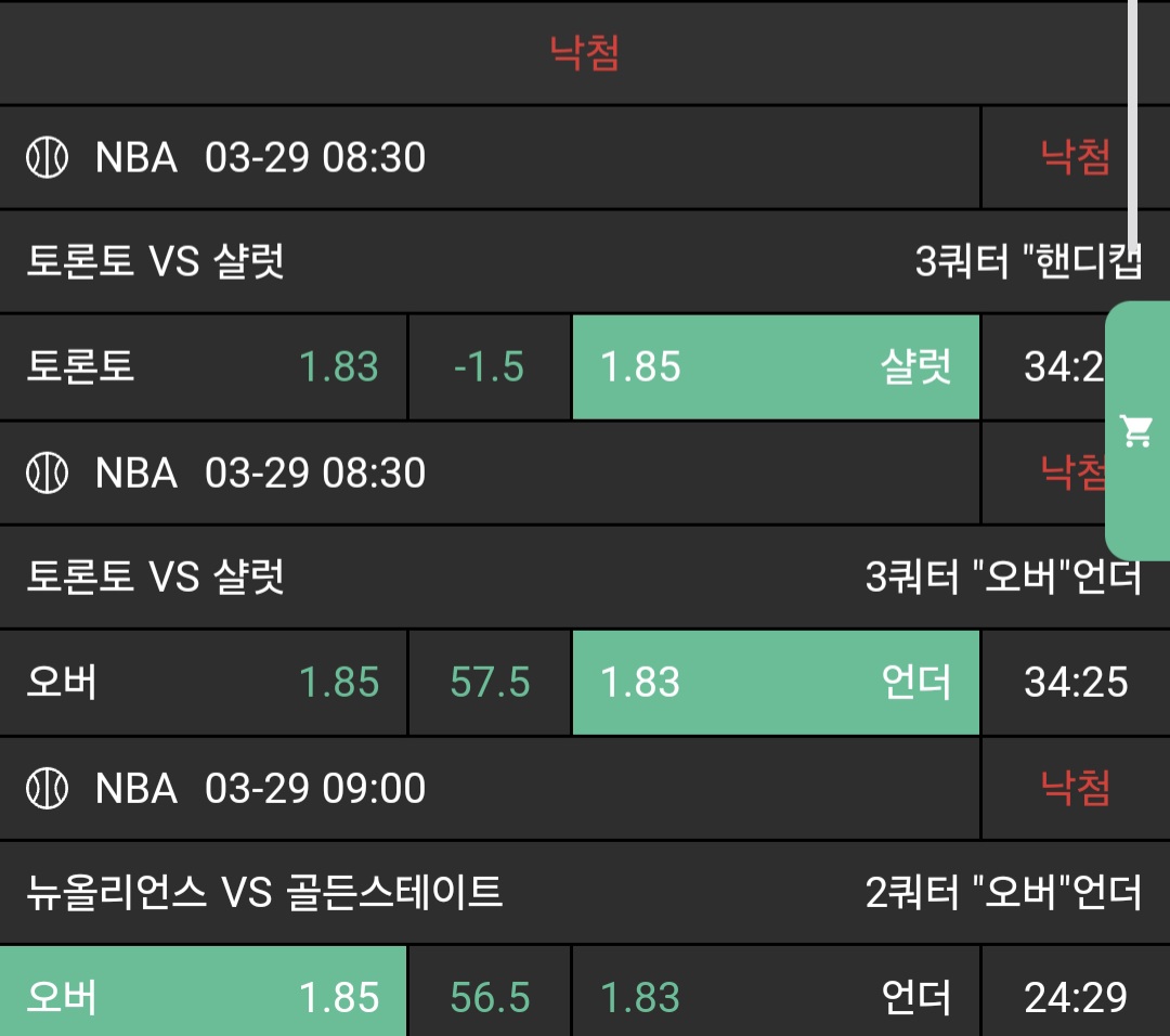저녁 3경기 가봅니다