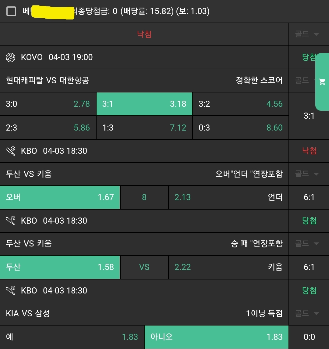 저녁 3경기 가봅니다