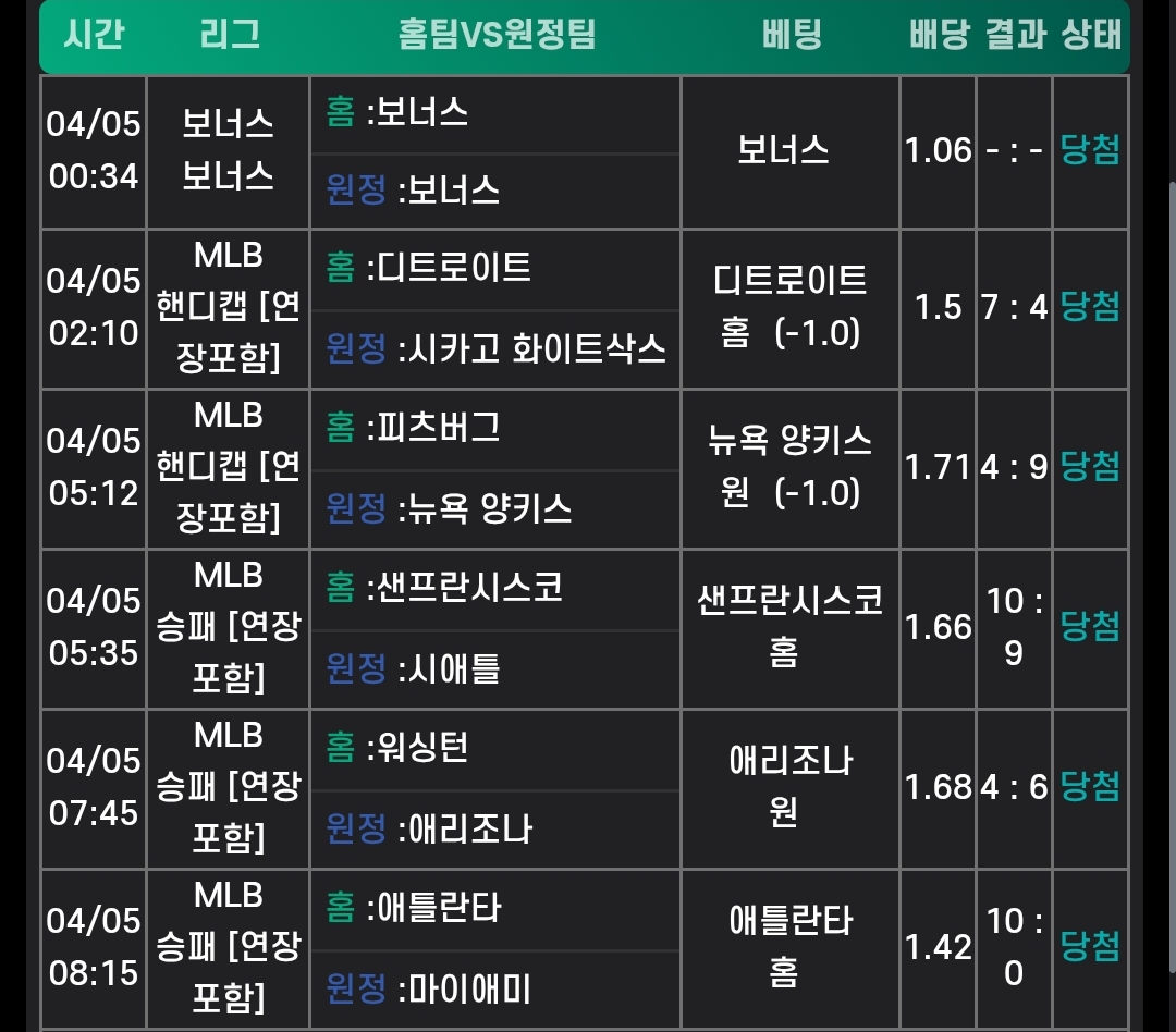 N저녁경기적중