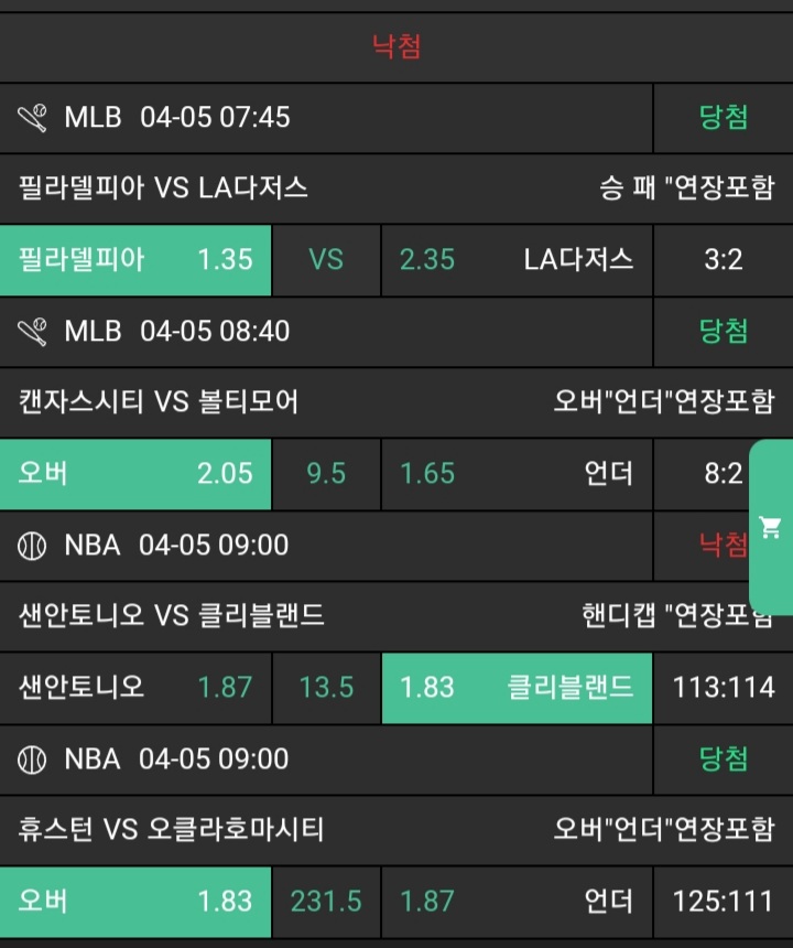 N저녁경기적중