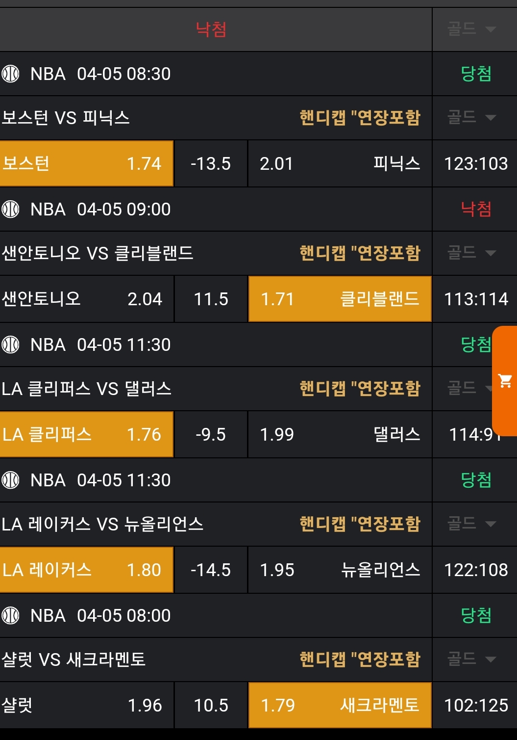 N저녁경기적중