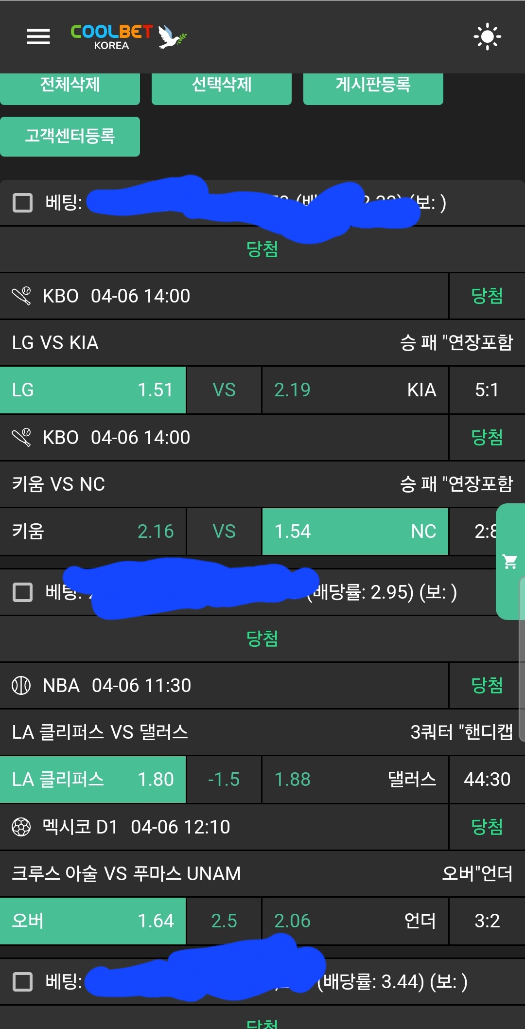 저녁 3경기 가봅니다